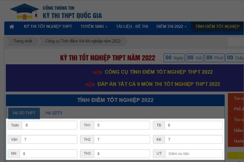 Bước 2: Ở các ô hiển thị, các bạn nhập vào điểm môn Toán, Điểm Ngữ văn, Điểm ngoại ngữ, Điểm môn tổ hợp 1, 2, 3, Điểm khuyến khích, Điểm ưu tiên cùng với Điểm trung bình năm học lớp 12 của mình. Nếu như phần nào không có thì các bạn điền vào số “0” hoặc bỏ trống.