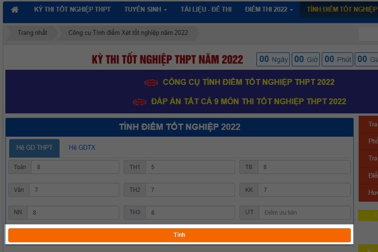Bước 1: Các thi sinh truy cập vào liên kết tính điểm thi tốt nghiệp THPT 2023 online tại liên kết: https://thptquocgia.edu.vn/tinhdiem/.
