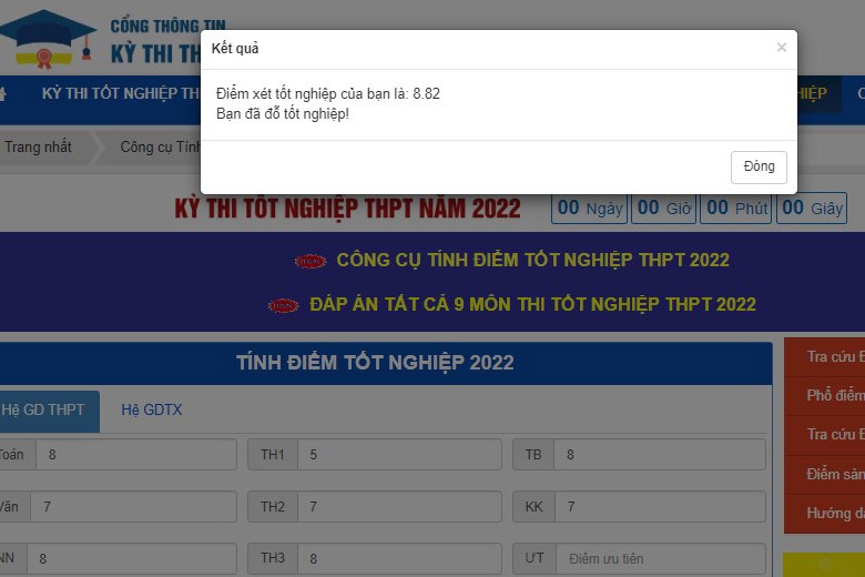 Bước 4: Ngay sau đó, màn hình sẽ trả về kết quả để cho biết bạn đã đậu tốt nghiệp hay là rớt.