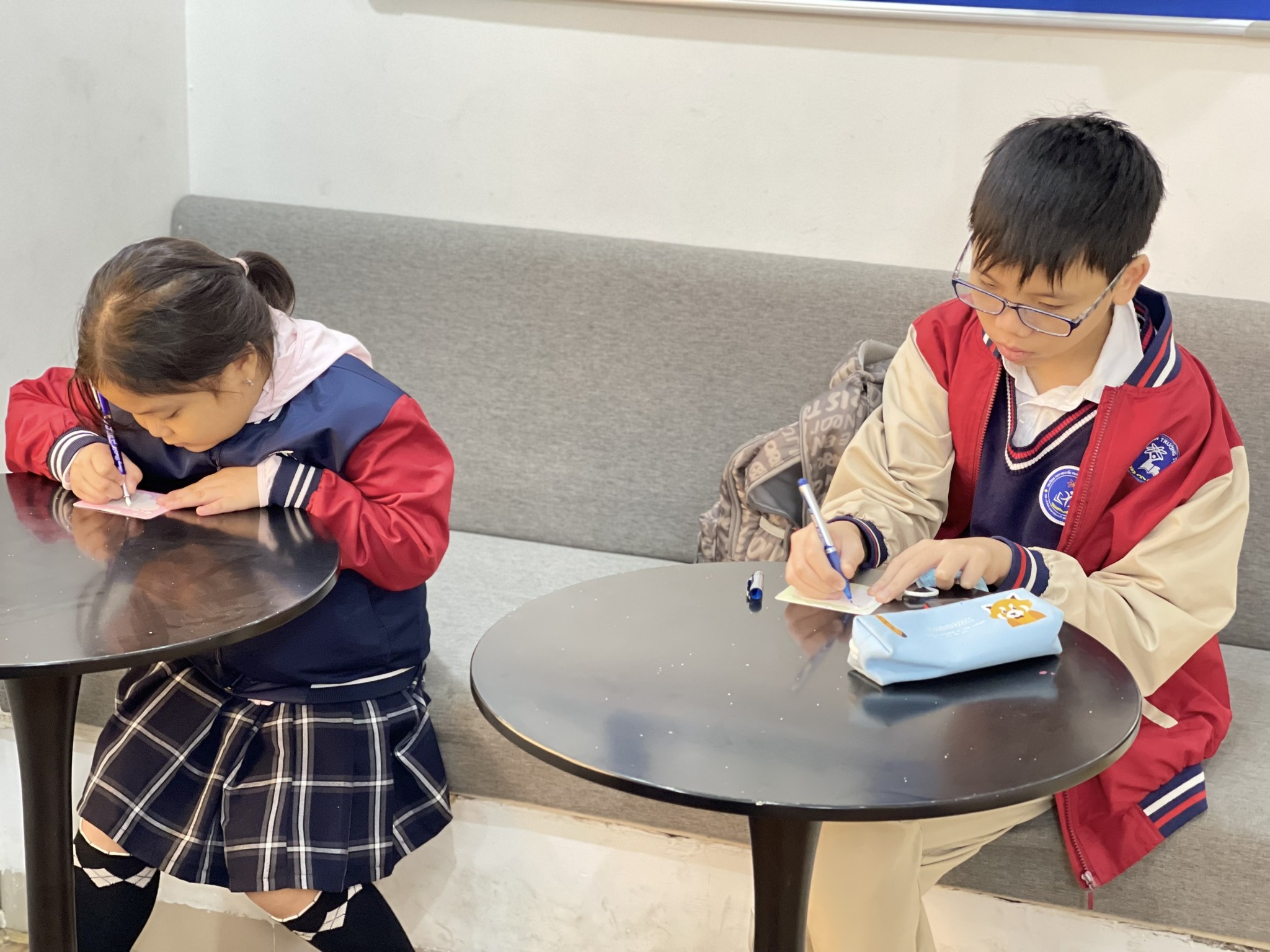 Dưới đây là một số hình ảnh các em học sinh tại cơ sở Láng Hạ chăm chú viết thiệp gửi tặng các thầy cô được CLB ghi lại trong những ngày qua
