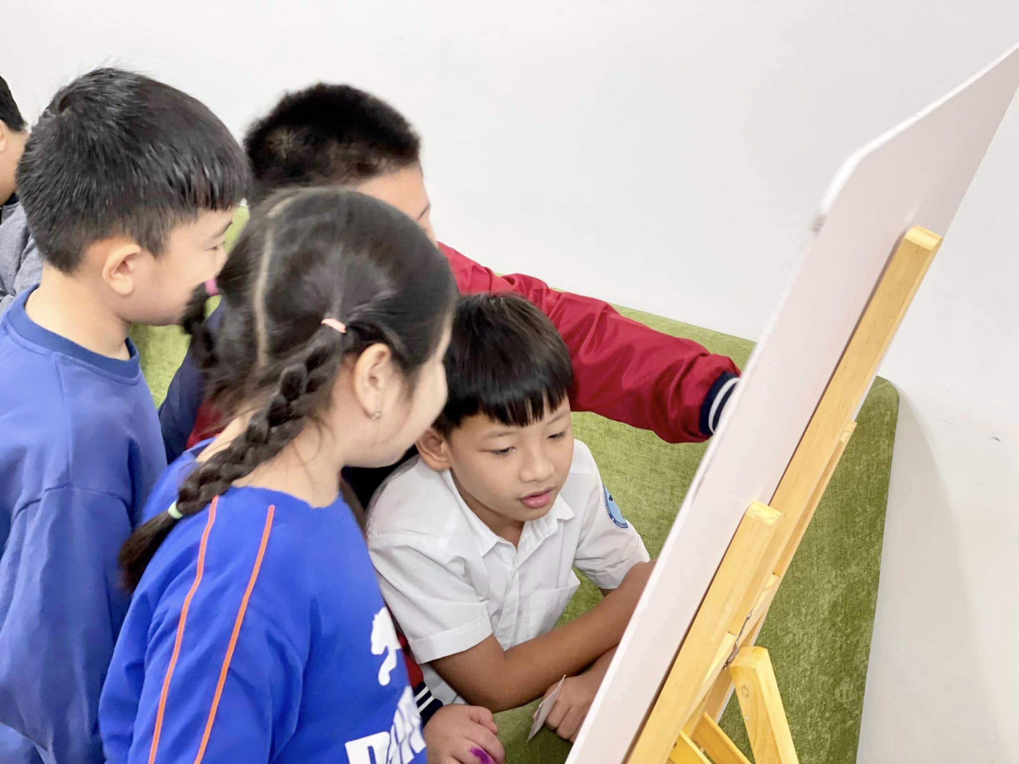 Các bạn học sinh tại cơ sở Láng Hạ đang cùng nhìn lại những lời chúc của mình