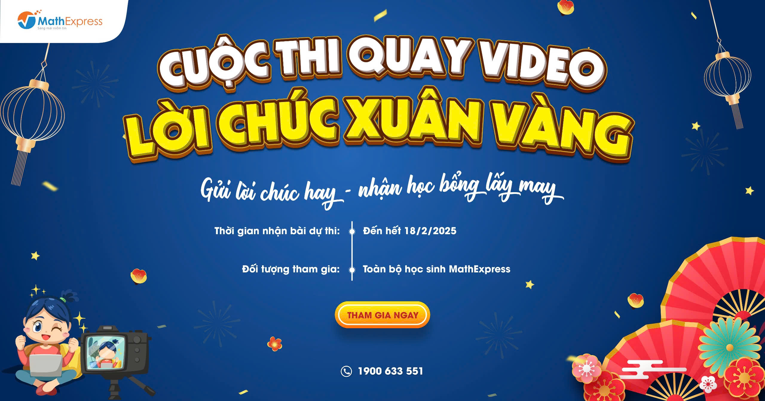 Nhằm tạo sân chơi bổ ích cho các em học sinh tại MathExpress nhân dịp năm mới, đồng thời là dịp để các em thể hiện tình cảm của mình tới những người thân yêu và quý trọng nhân dịp đầu xuân năm mới, CLB MathExpress tổ chức cuộc thi quay video: “LỜI CHÚC XUÂN VÀNG 2025”. Thông tin chi tiết của cuộc thi quay video như sau: