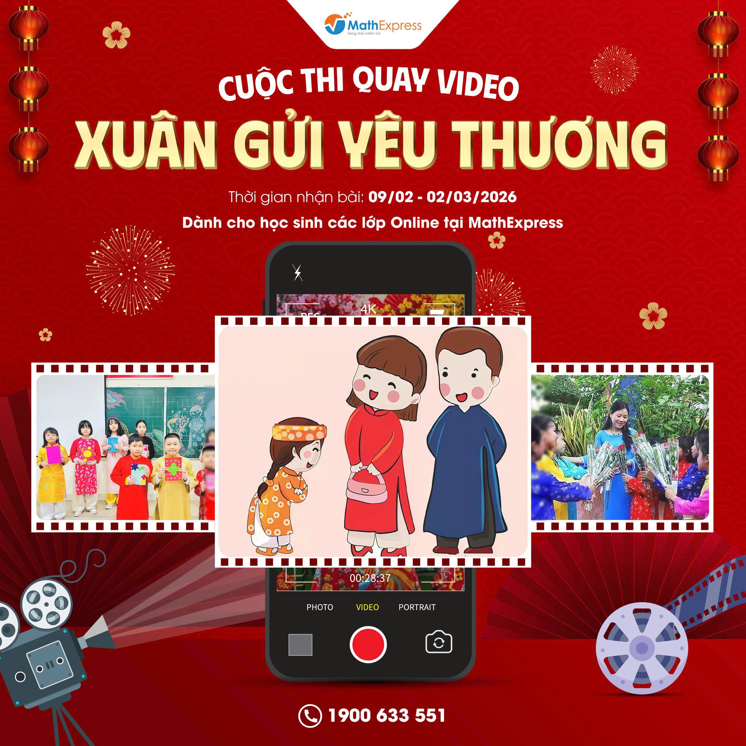 - Chủ đề quay video: Các em quay video gửi lời chúc Tết của mình tới Thầy Cô của MathExpress hoặc lời chúc gửi tới CLB nhân dịp năm mới Bính Ngọ 2026.