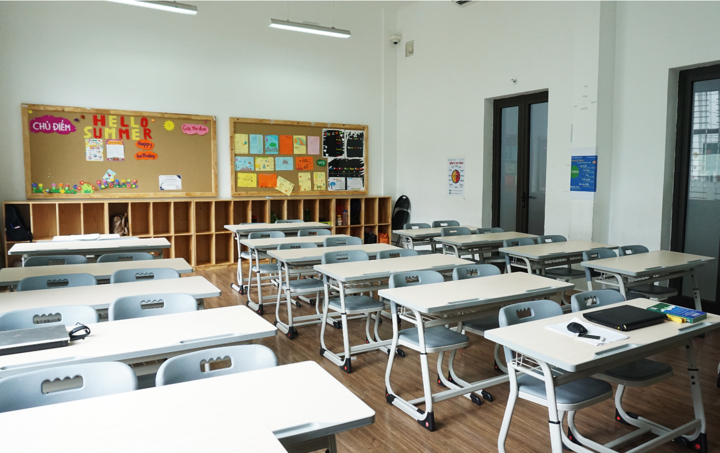 Hệ thống phòng học được thiết kế rộng rãi, lưu thông không khí tự nhiên và đạt tiêu chuẩn cao về ánh sáng, nhiệt độ, độ ẩm, cách âm và an toàn cháy nổ. Trong phòng học, nhà trường trang bị đầy đủ máy chiếu, bảng từ, bảng nỉ, điều hòa, quạt, tủ đựng đồ cá nhân cho học sinh… Bàn ghế trong lớp học được thiết kế thông minh, dễ dàng di chuyển để đáp ứng các phương pháp dạy và học khác nhau.