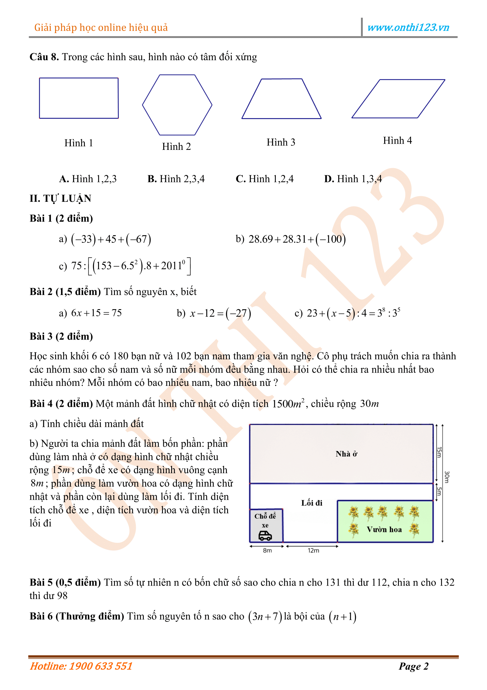 Các học sinh khối 6 hãy thử sức với đề thi này để luyện tập thật tốt cho những kỳ thi sắp tới nhé.