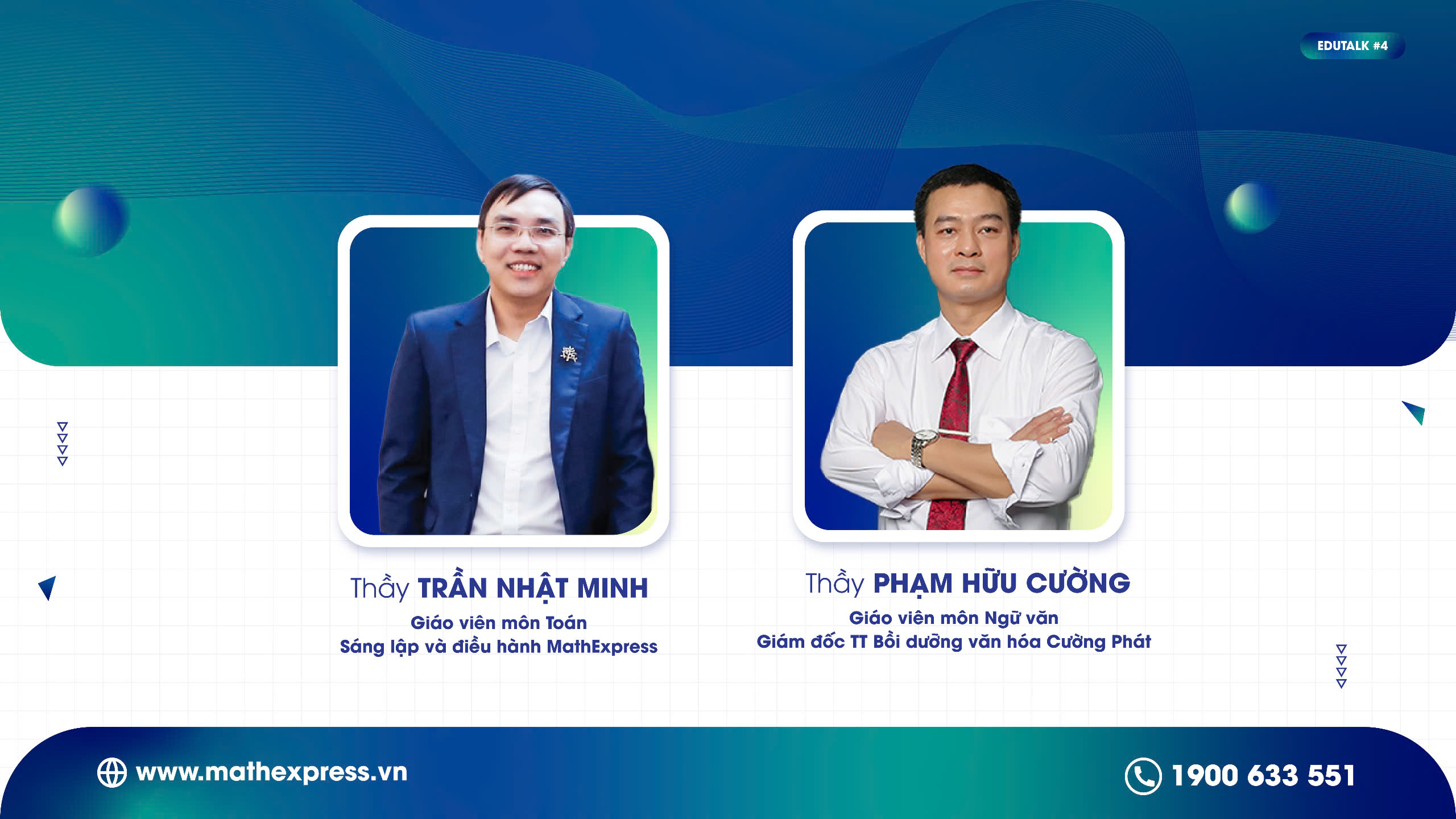MathExpress xin chân thành cảm ơn diễn giả là thầy Trần Nhật Minh và thầy Phạm Hữu Cường đã mang đến những chia sẻ vô cùng tâm huyết góp phần vào sự thành công của chương trình EDUTALK 4. Những chia sẻ quý báu và kiến thức sâu sắc được các thầy chia sẻ không chỉ giúp học sinh tự tin hơn trong kỳ thi chuyển cấp, mà còn mang lại những góc nhìn mới mẻ, giúp cho phụ huynh yên tâm hơn trong hành trình đồng hành cùng con trước ngưỡng cửa quan trọng của cuộc đời.