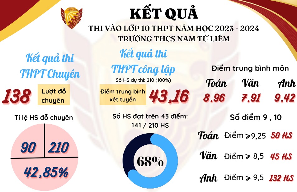 Thành tích trong kỳ thi vào lớp 10 THPT năm học 2023-2024 của học sinh trường THCS Nanm Từ Liêm