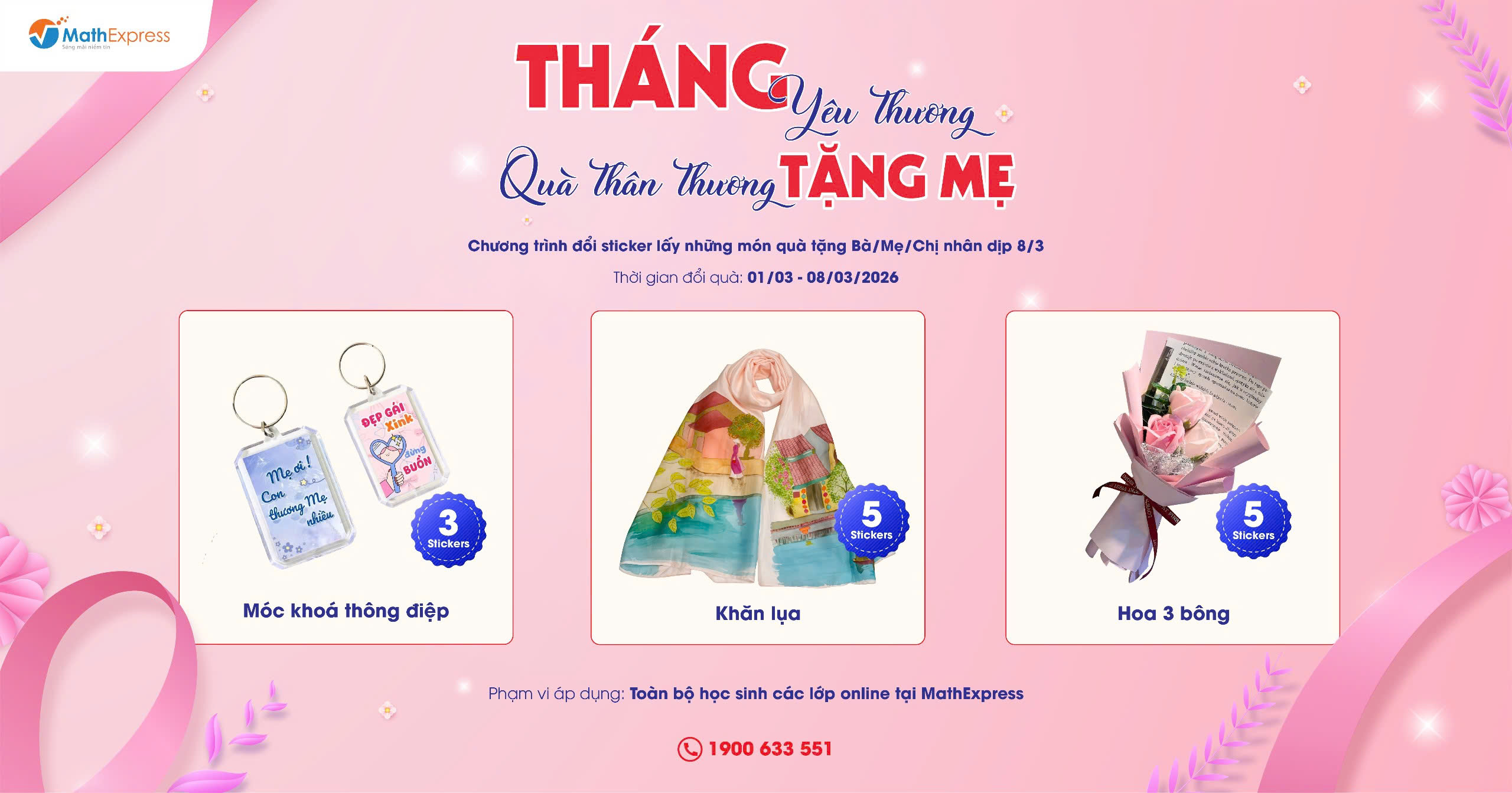 Nhằm chào mừng ngày Quốc tế Phụ nữ 8/3, MathExpress tổ chức chương trình đặc...