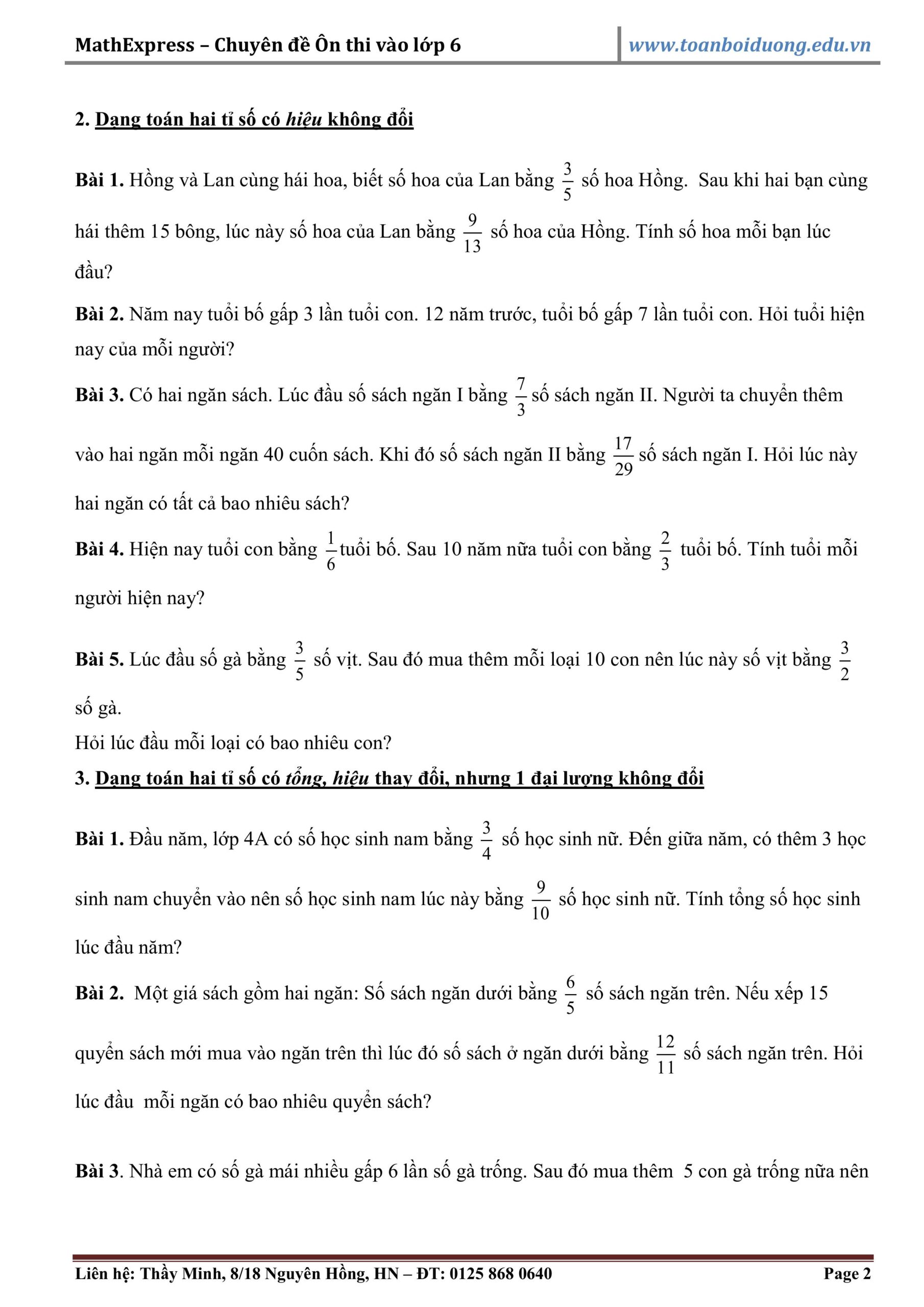 Tài liệu về “Phương pháp giải bài toán về Hai tỉ số”. Đây là dạng bài cực kỳ quan trọng và thường xuất hiện trong các kỳ thi đầu cấp vào lớp 6.