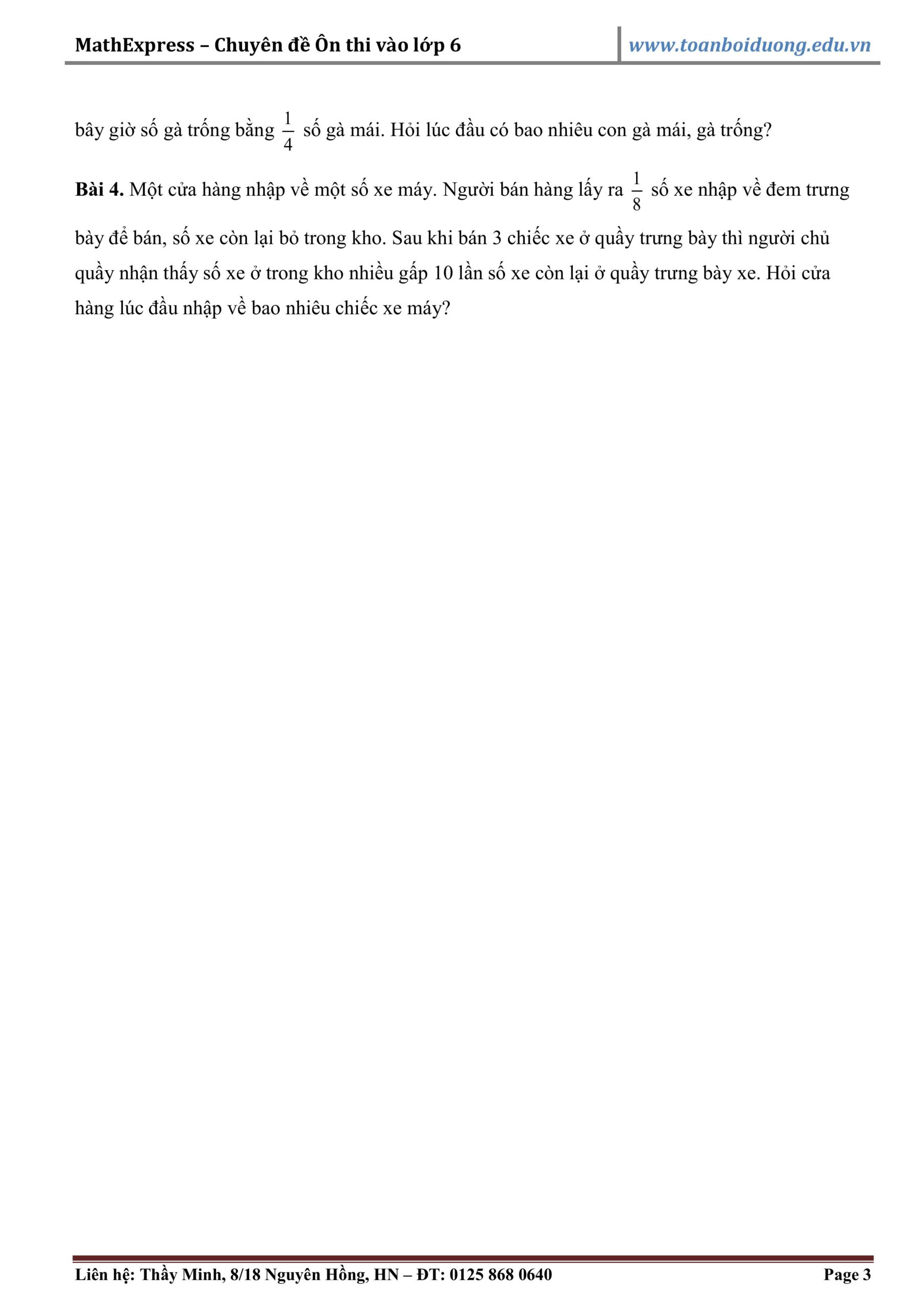Chuyên đề Ôn thi vào lớp 6 – Phương pháp giải bài toán “Hai tỉ số”