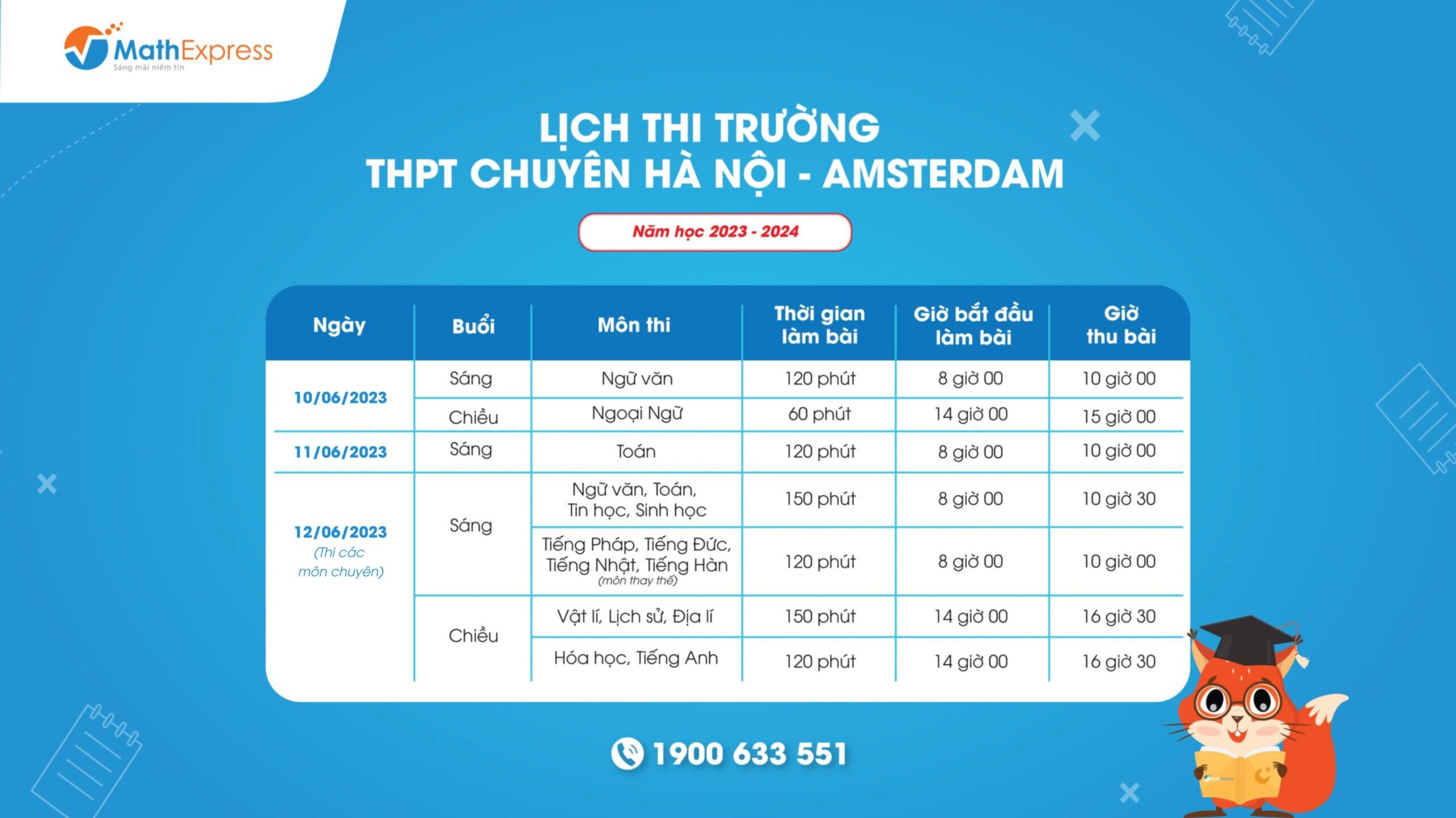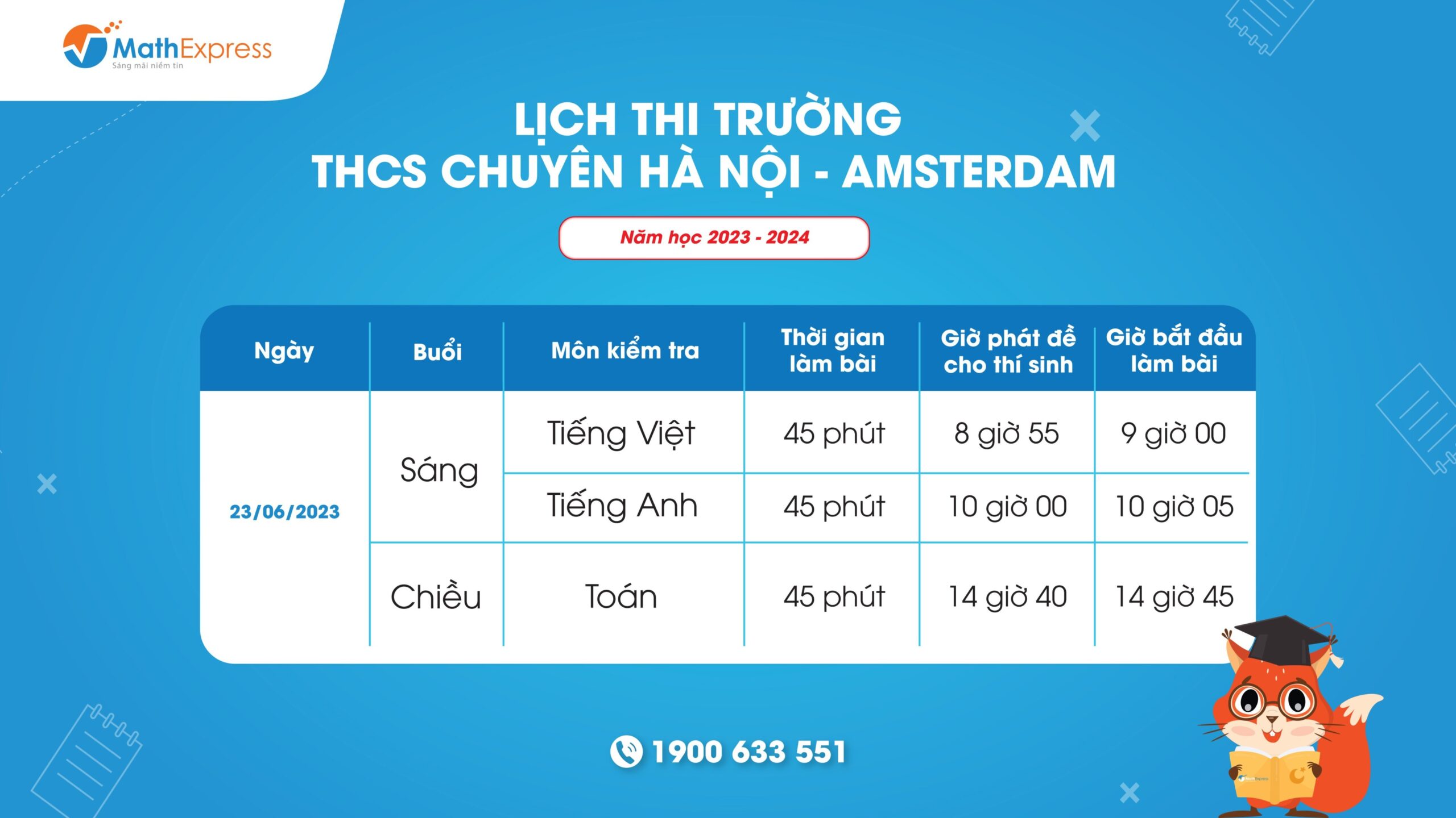 Lịch thi vào trường Amsterdam năm học 2023-2024