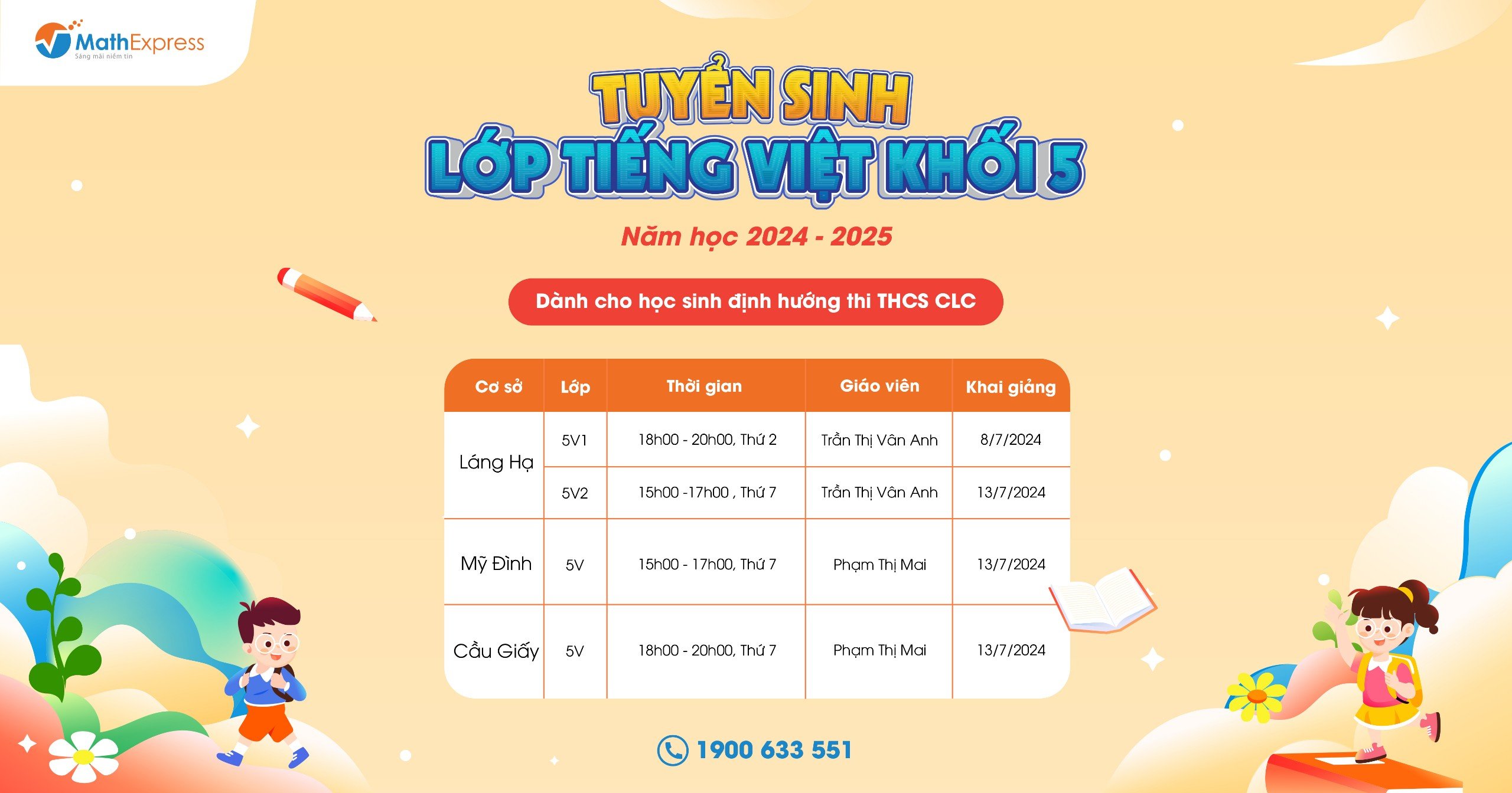 MathExpress tuyển sinh lớp Tiếng Việt cho học sinh khối 5 định hướng thi THCS Chất Lượng Cao