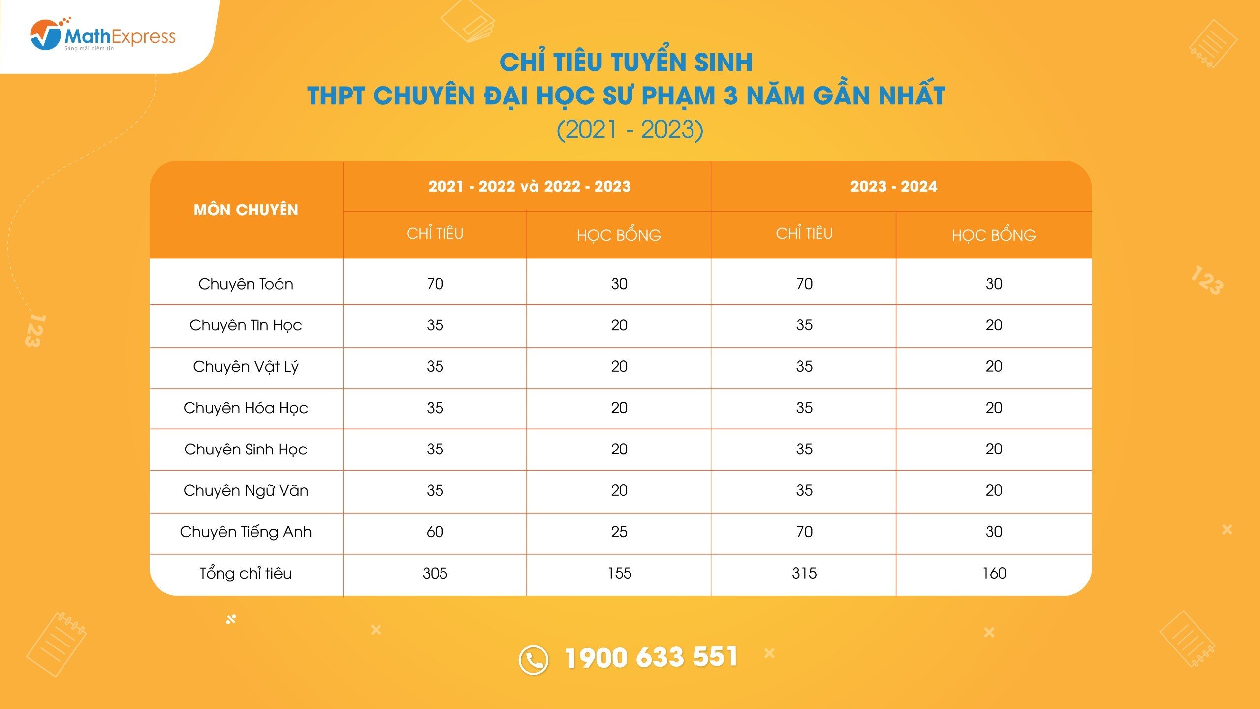 Chỉ tiêu tuyển sinh THPT Chuyên Sư Phạm 3 năm học gần nhất (2021- 2023)