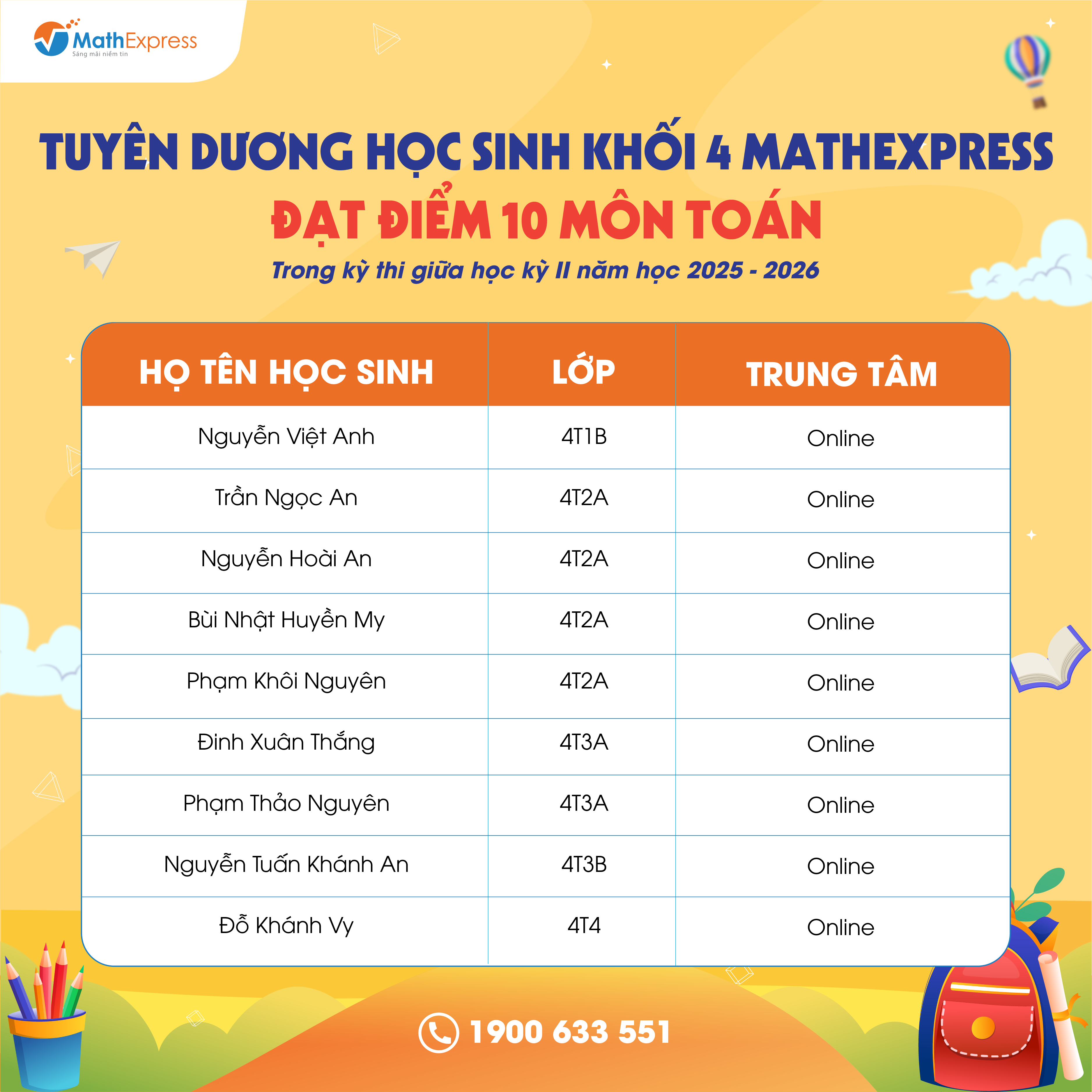 MATH EXPRESS ĐỒNG HÀNH CÙNG CON TRÊN LỘ TRÌNH PHÁT TRIỂN