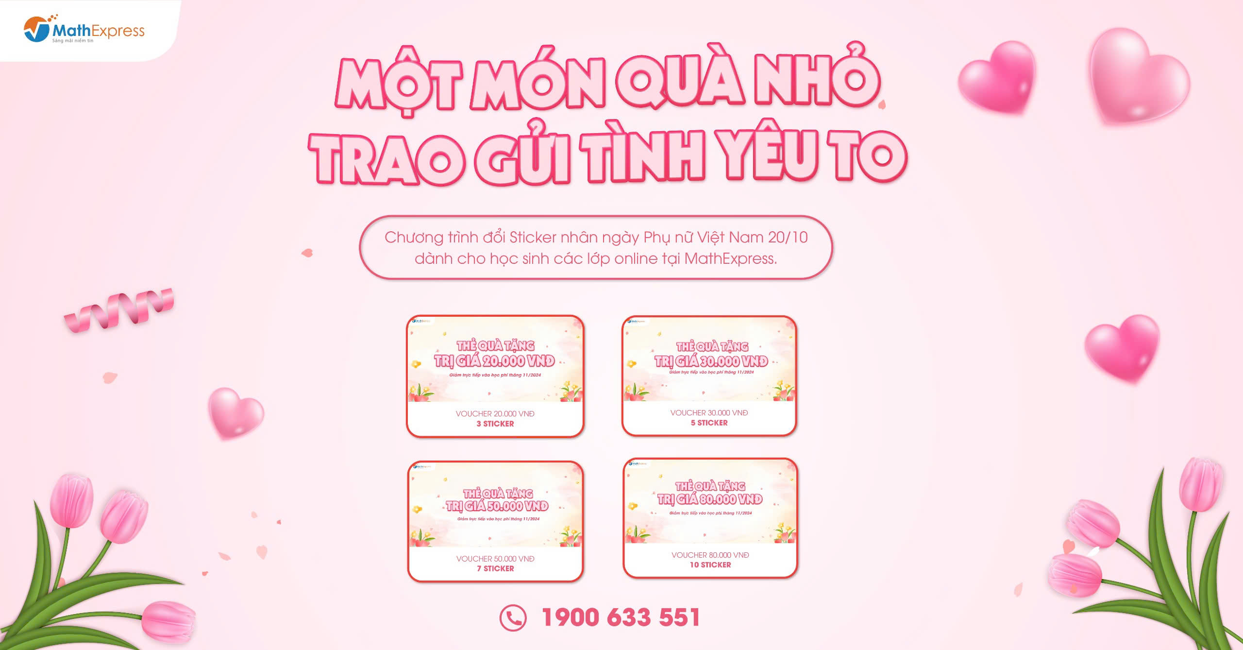 MathExpress hy vọng rằng chương trình này sẽ giúp các em học sinh lớp online mang lại nhiều niềm vui và ý nghĩa tới Người Bà, Người Mẹ và Người Chị của mình. Mọi thông tin chi tiết, Phụ huynh vui lòng liên hệ tới số hotline 1900 633 551 hoặc nhắn tin tới fanpage CLB Toán bồi dưỡng – MathExpress để được hỗ trợ.